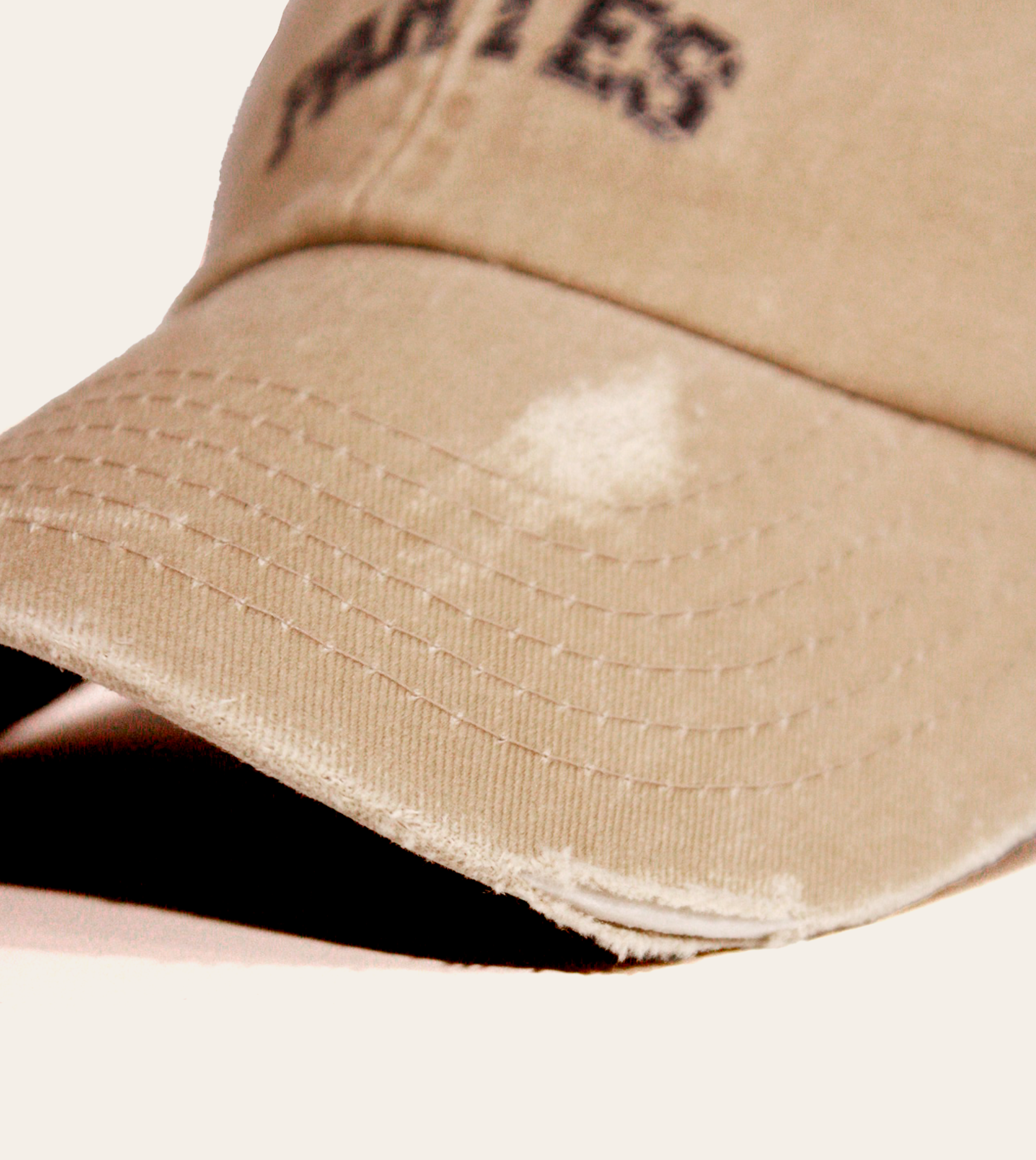 WASHED DISTRESSED CAP 16,90 € Desconto de %. Partilhar Comprar Contactar Descrição Chapeu de 6 painéis em bege desgastado. Desagaste adicionado manualmente. Estampado na frente do chapéu. Fita traseira para ajuste de tamanho. DIMENSÕES Tamanho único regulável.